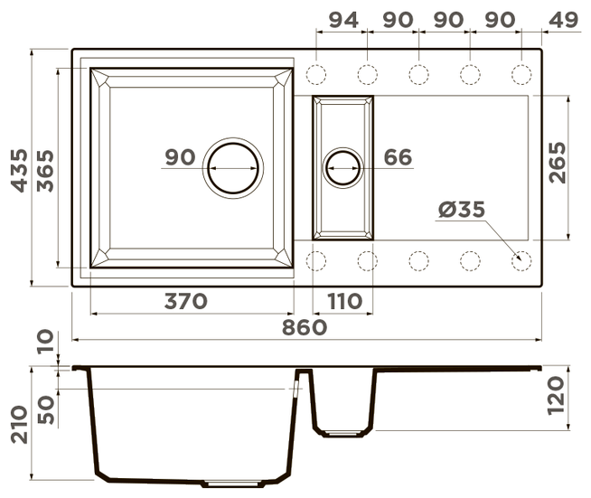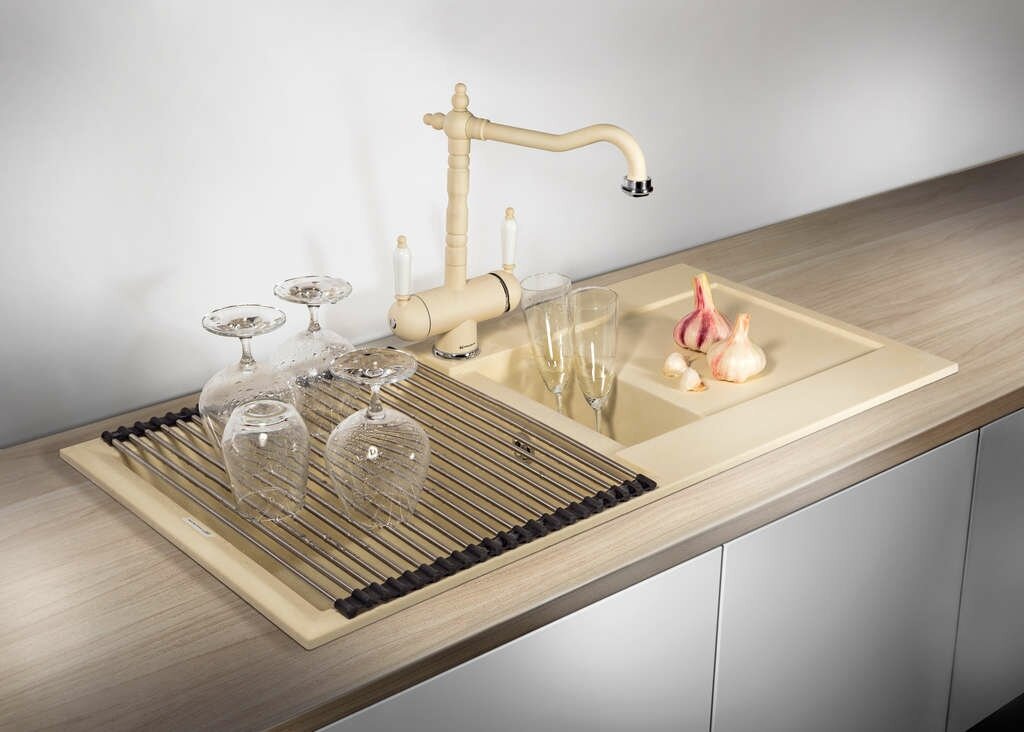 - Материал выдерживает высокие температуры до 280°С (но не стоит ставить на поверхность мойки горячие сковородки и кастрюли, т.к их температура может достигать 500°С).