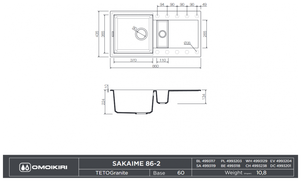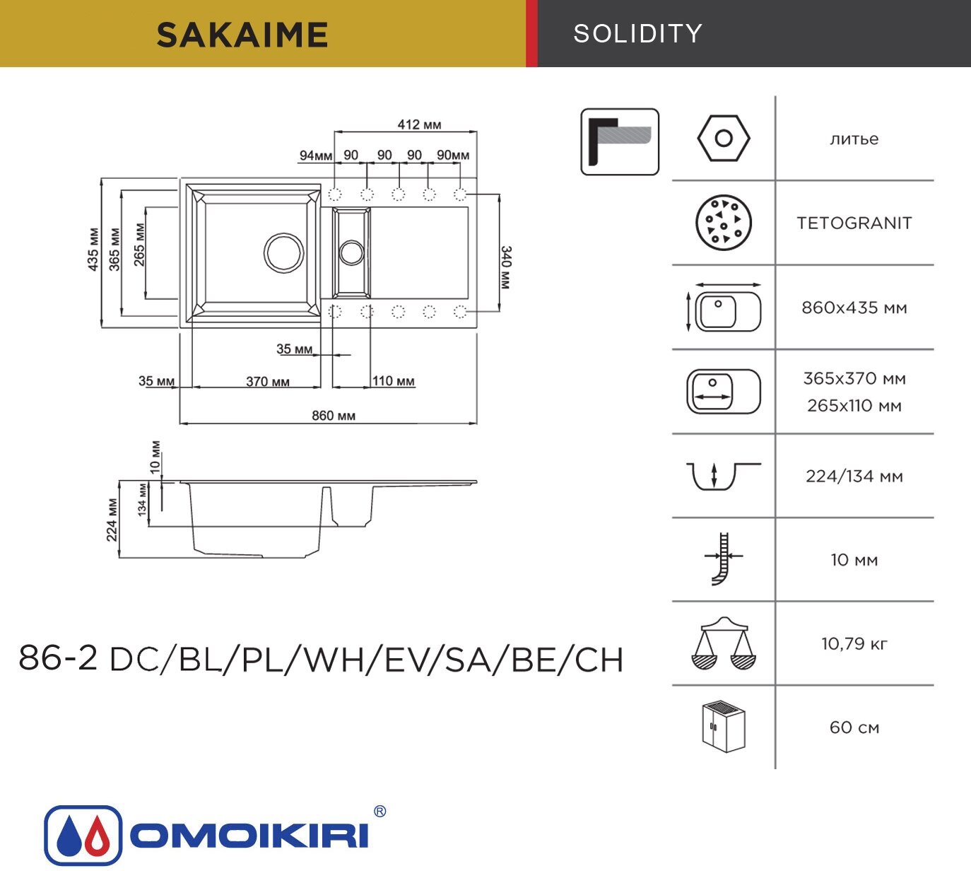 Скачать документы для Мойка Omoikiri Sakaime 86-2-SA бежевый (4993119)