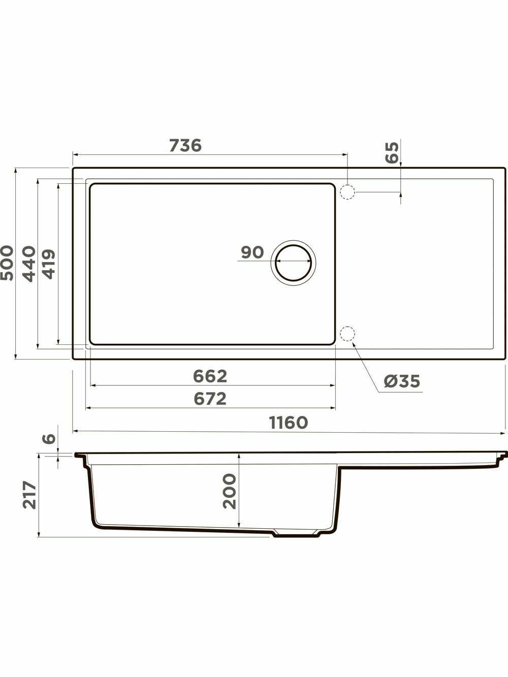 отверстие под смеситель, с крылом, сливная арматура