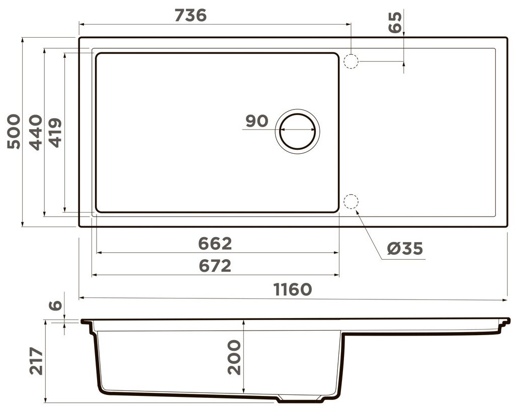 Ширина мойки