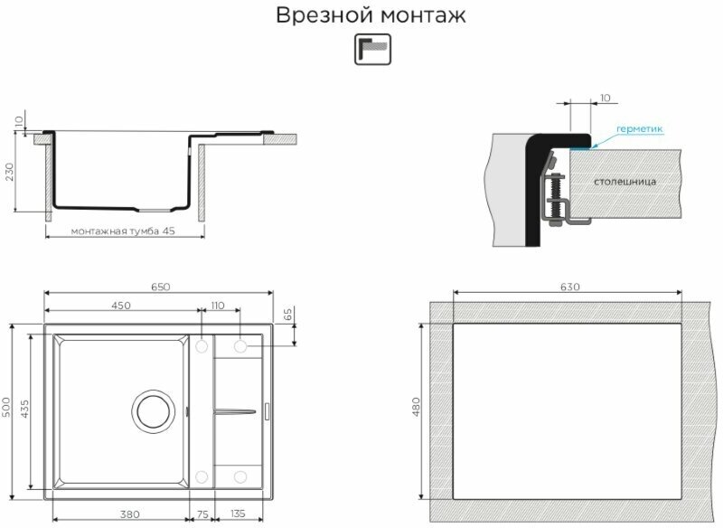- Материал выдерживает высокие температуры до 280°С (но не стоит ставить на поверхность мойки горячие сковородки и кастрюли, т.к их температура может достигать 500°С).