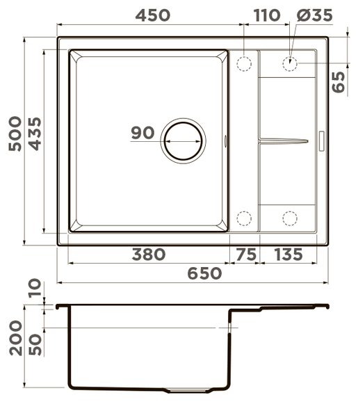 - За счет окрашивания каждой частицы гранитного материала при помощи специальной технологии, первоначальный цвет мойки гарантировано сохраняется в течение всего срока службы;