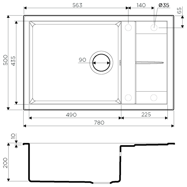 - Материал выдерживает высокие температуры до 280°С (но не стоит ставить на поверхность мойки горячие сковородки и кастрюли, т.к их температура может достигать 500°С).