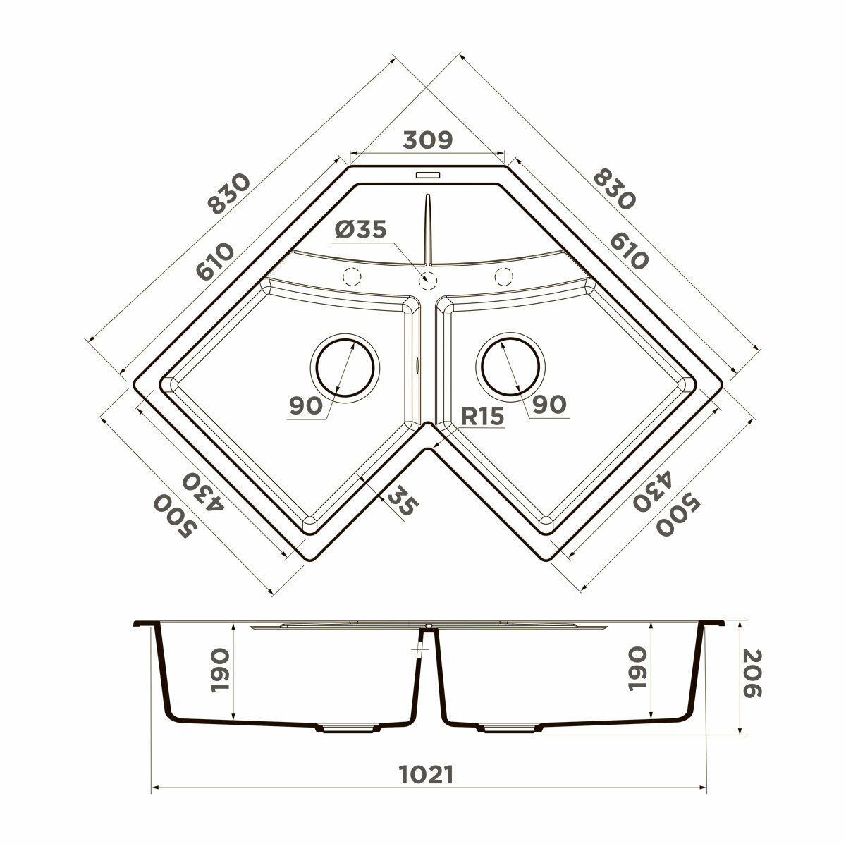- Материал выдерживает высокие температуры до 280°С (но не стоит ставить на поверхность мойки горячие сковородки и кастрюли, т.к их температура может достигать 500°С).