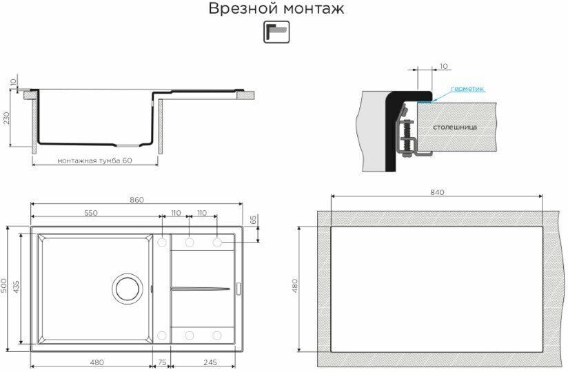 врезная, накладная, врезная на столешницу, встраиваемая