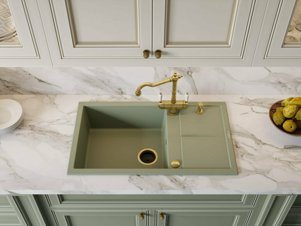 - Кухонная мойка изготовлена из передового материала «Artceramic», технология производства которого была разработана итальянскими специалистами и заключается в том, что измельченное сырье для производства керамики соединяют в пресс-форме с акриловыми смолами разного типа и нагревают с целью запуска химического процесса полимеризации (затвердевания). Важным моментом в процессе производства является использование сырья очень измельченного состояния, которое в связке с акриловой смолой образует однородную структуру с плотно прилегающими друг к другу молекулами. Структура, изготовленная при помощи такой технологии, исключает наличие даже малейших пор между частицами материала, благодаря чему достигается идеально гладкая поверхность и гигиеничность моек;