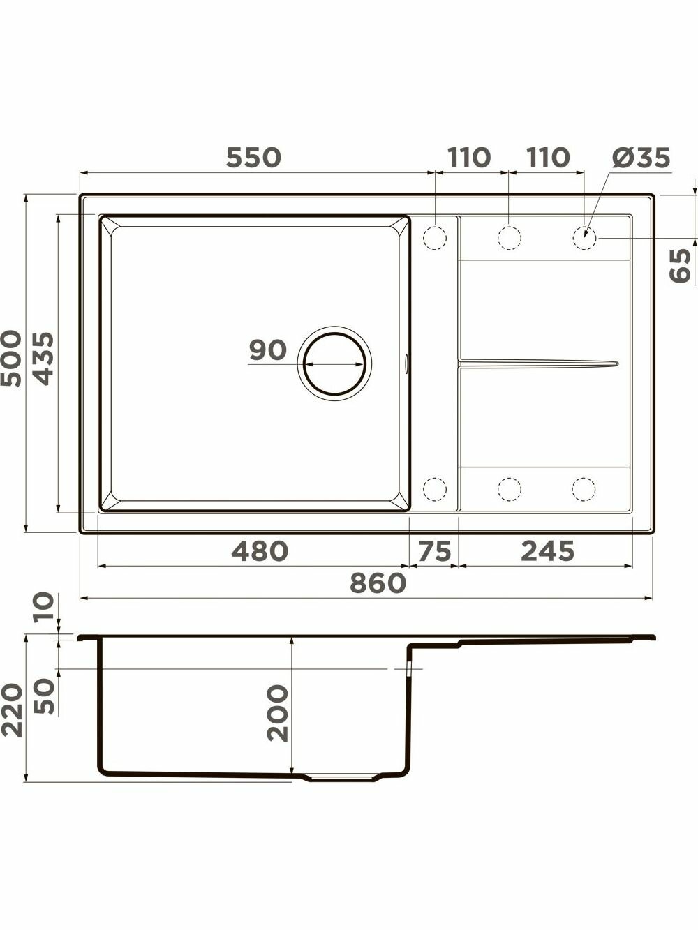 - Материал выдерживает высокие температуры до 280°С (но не стоит ставить на поверхность мойки горячие сковородки и кастрюли, т.к их температура может достигать 500°С);