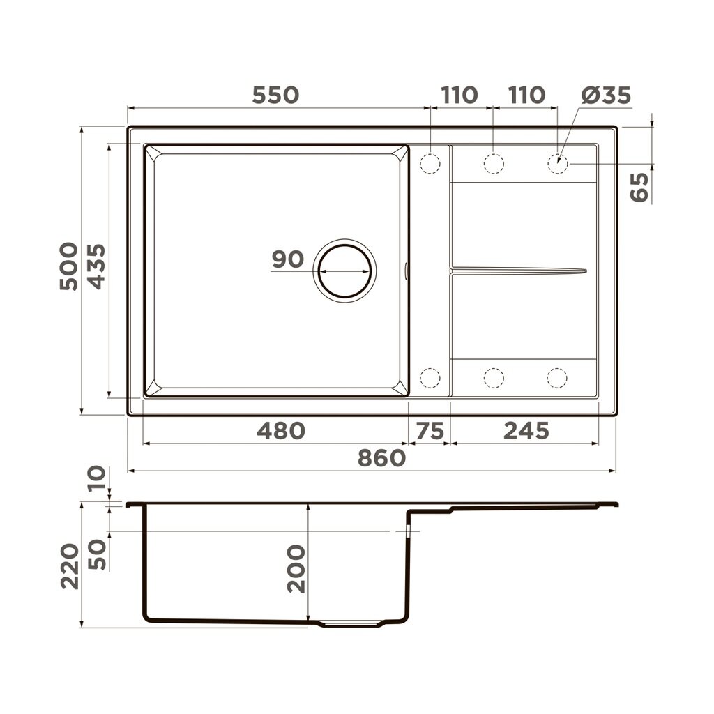 - Материал выдерживает высокие температуры до 280°С (но не стоит ставить на поверхность мойки горячие сковородки и кастрюли, т.к их температура может достигать 500°С);
