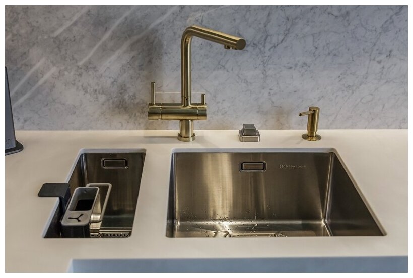 - Самый важный показатель у мойки из нержавеющей стали - толщина стали, ведь чем она тоньше, тем менее твердой, надежной и долговечной будет мойка. Для качественной мойки лучше выбирать толщину выше 0,6 мм. Мойки бренда имеют толщину от 0,7 до 1,2 мм;