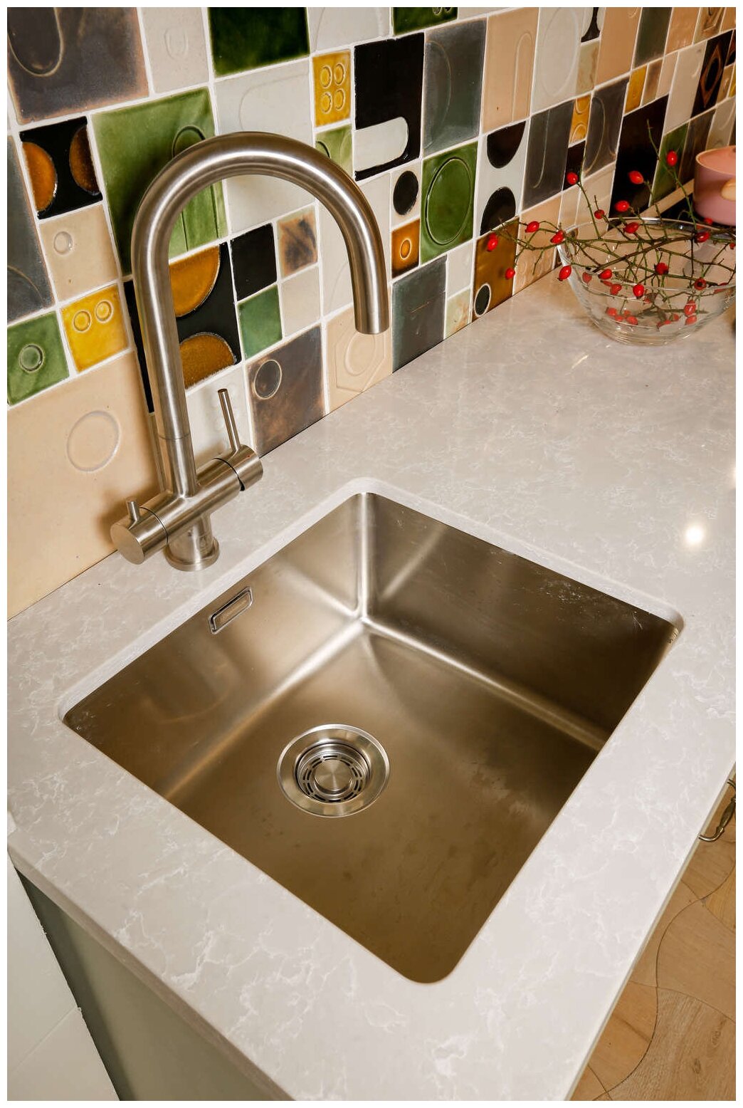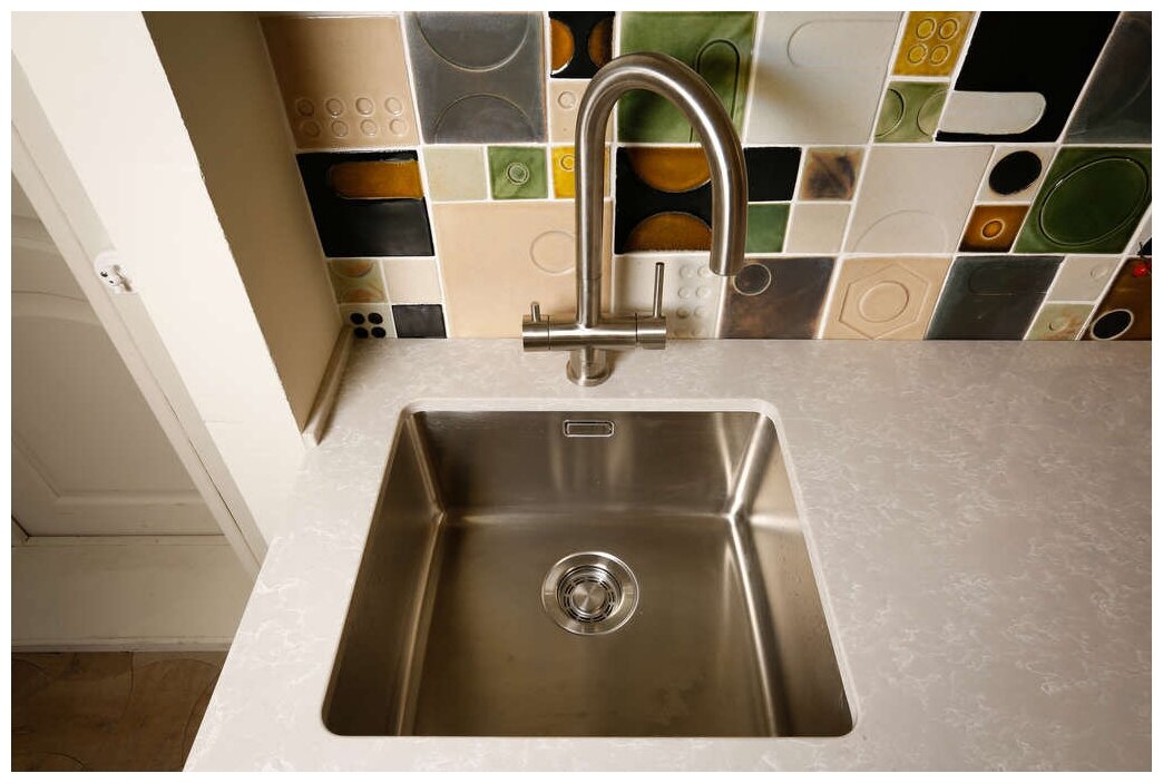 - Кухонная мойка изготовлена из высококачественной хромоникелевой нержавеющей стали SUS304. Она содержит 18% хрома и 8% никеля, что обеспечивает её максимальную защиту от коррозии;