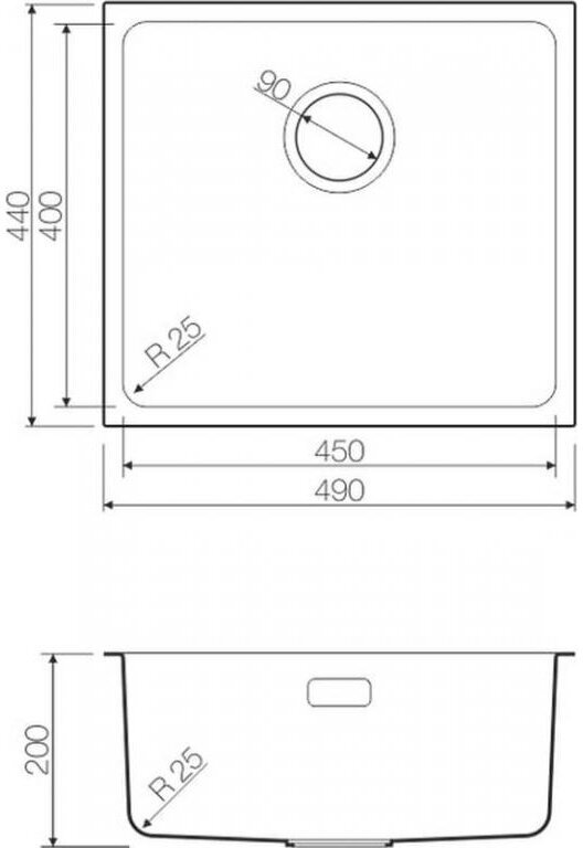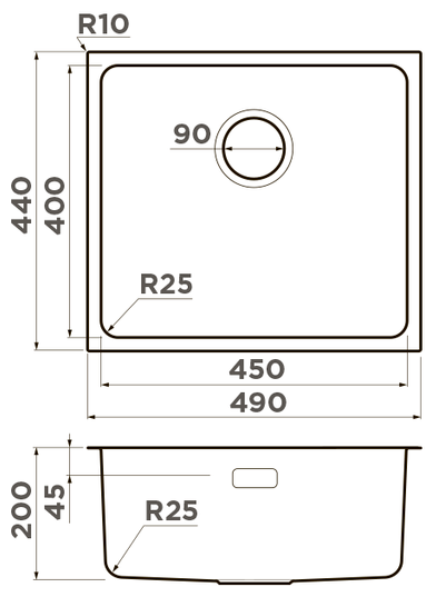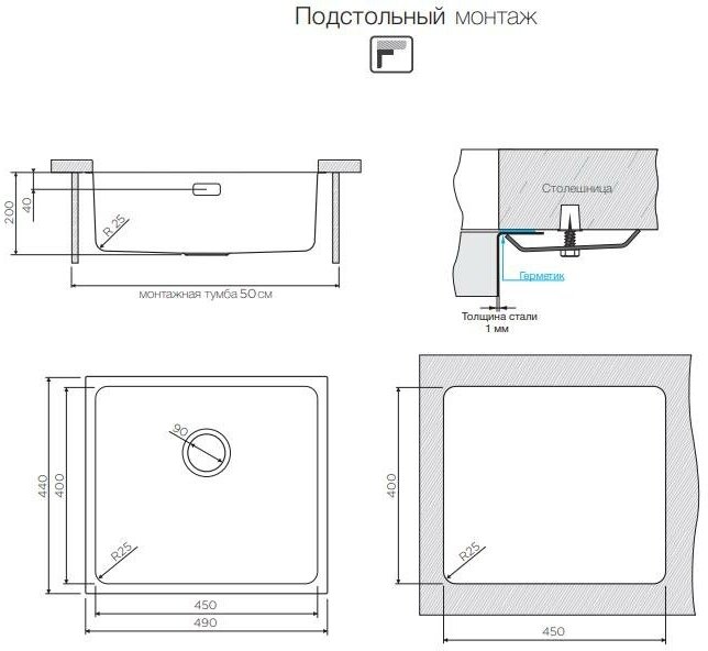 монтаж под столешницу, шумоподавляющее покрытие, радиус угла закругления 25 мм