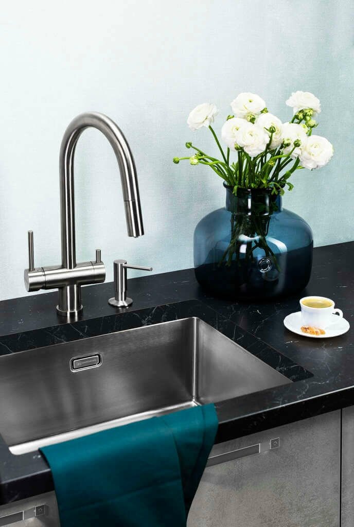 - Мойкам из нержавеющей стали не страшен кипяток, горячие сковородки и кастрюли. Кроме этого нерезкие перепады температур также не могут навредить материалу. Мойки устойчивы к воздействию бытовой химии;