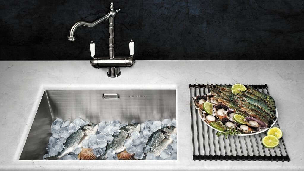 - Мойкам из нержавеющей стали не страшен кипяток, горячие сковородки и кастрюли. Кроме этого нерезкие перепады температур также не могут навредить материалу. Мойки устойчивы к воздействию бытовой химии;