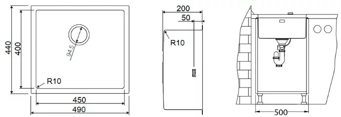 - Кухонная мойка изготовлена из высококачественной хромоникелевой нержавеющей стали SUS304. Она содержит 18% хрома и 8% никеля, что обеспечивает её максимальную защиту от коррозии;
