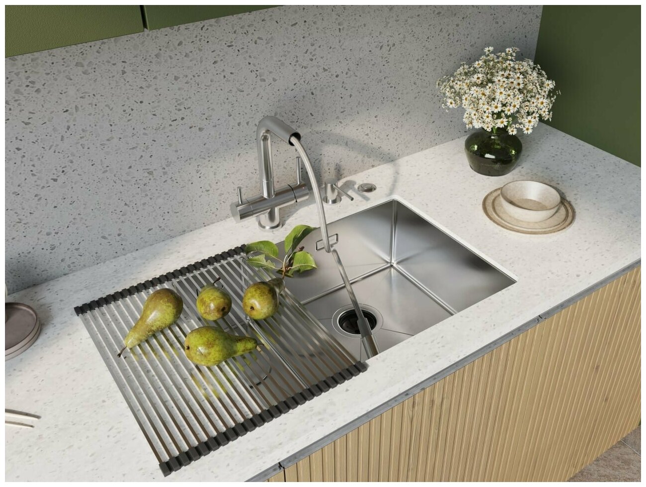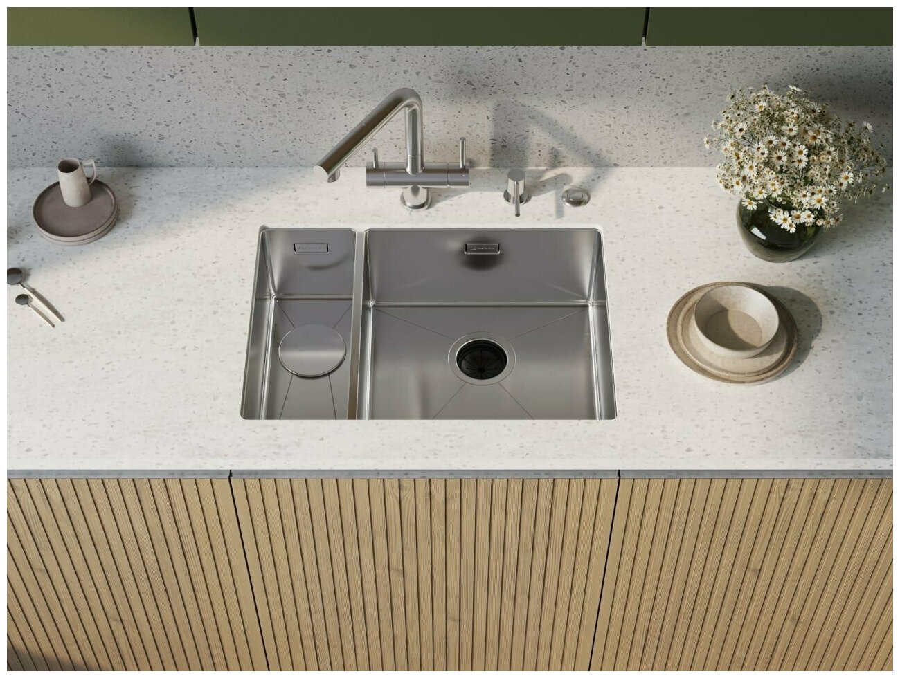 - Кухонная мойка изготовлена из высококачественной хромоникелевой нержавеющей стали SUS304. Она содержит 18% хрома и 8% никеля, что обеспечивает её максимальную защиту от коррозии;