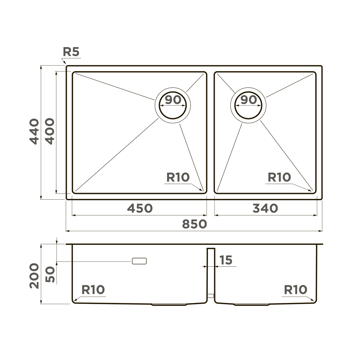 - Кухонная мойка изготовлена из высококачественной хромоникелевой нержавеющей стали SUS304. Она содержит 18% хрома и 8% никеля, что обеспечивает её максимальную защиту от коррозии;