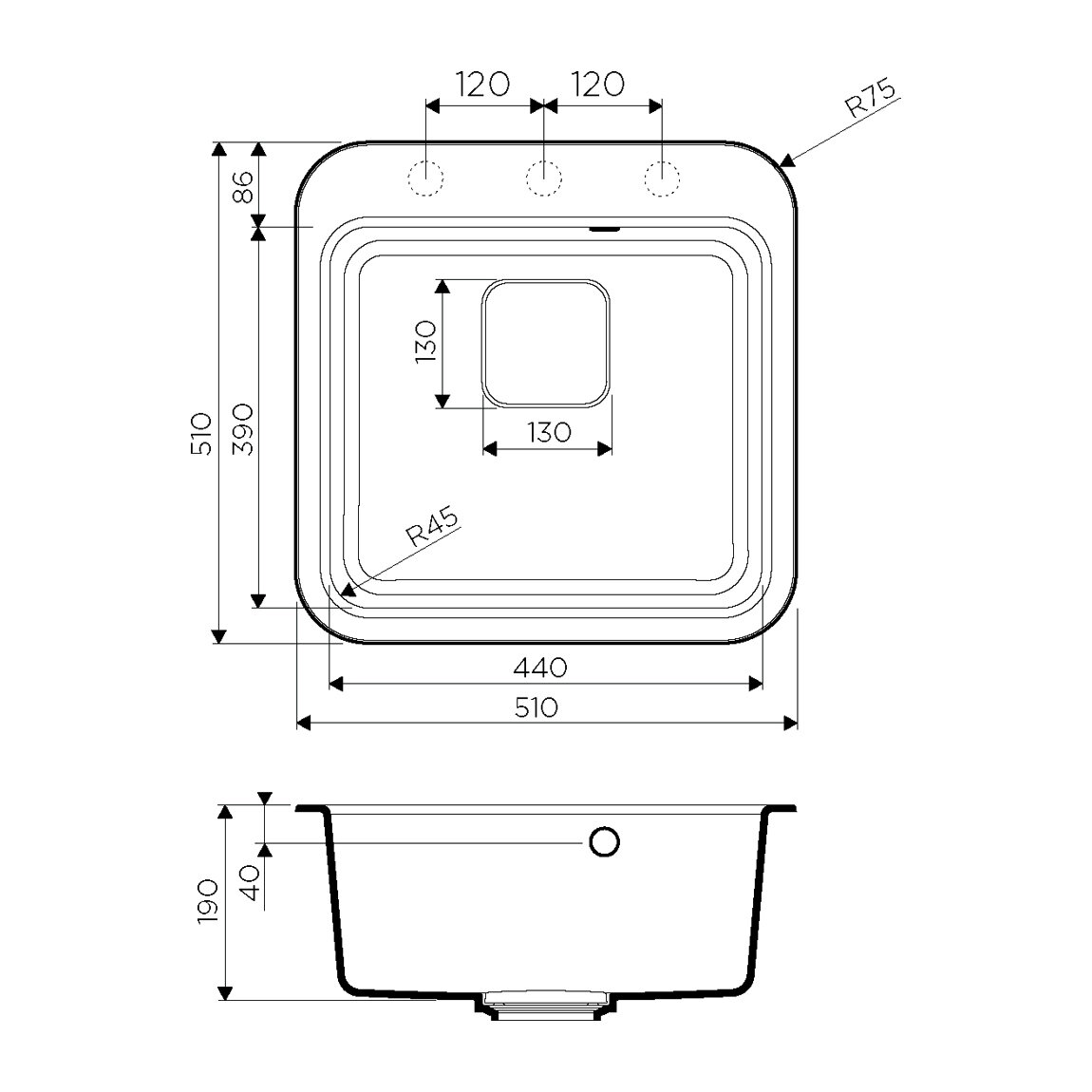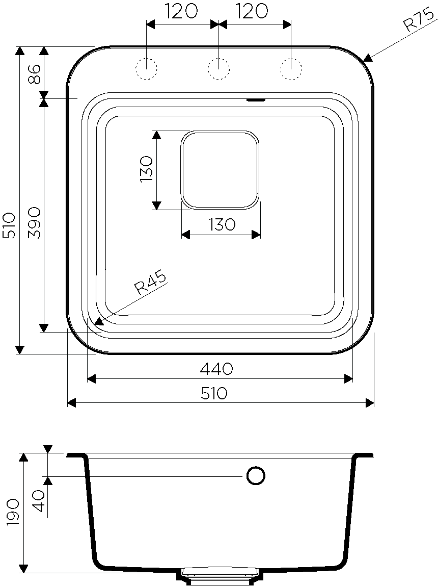 Комплектация - Мойка - 1 шт. Сифон - 1 шт. Слив-перелив - 1 шт. Корзинчатый вентиль - 1 шт. Комплект креплений - 1 шт. Инструкция - 1 шт.;Оснащение - сифон/сливная арматура/крепления; Монтажная длина - 51; Монтажная ширина - 51