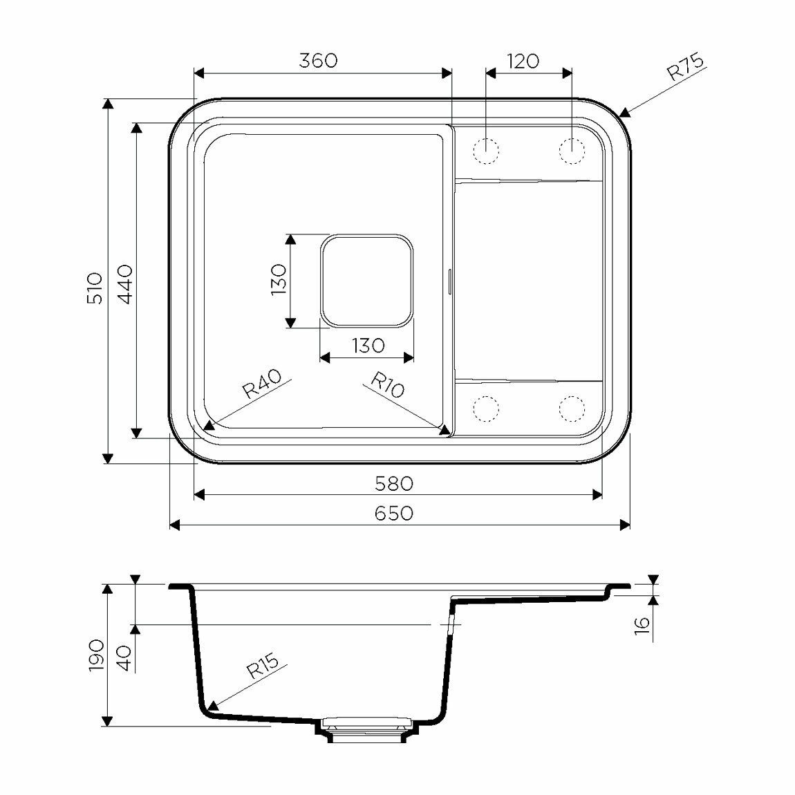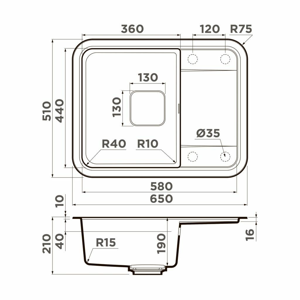 - Помимо гранита, в состав материала входит молотый кварц мельчайших размеров, которому характерны непревзойденная прочность и устойчивость к природным и химическим воздействиям. Свойства данного компонента вместе с долговечностью гранита обеспечивают мойке прочность и делают её устойчивой к любым механическим повреждениям: деформациям, сколам;