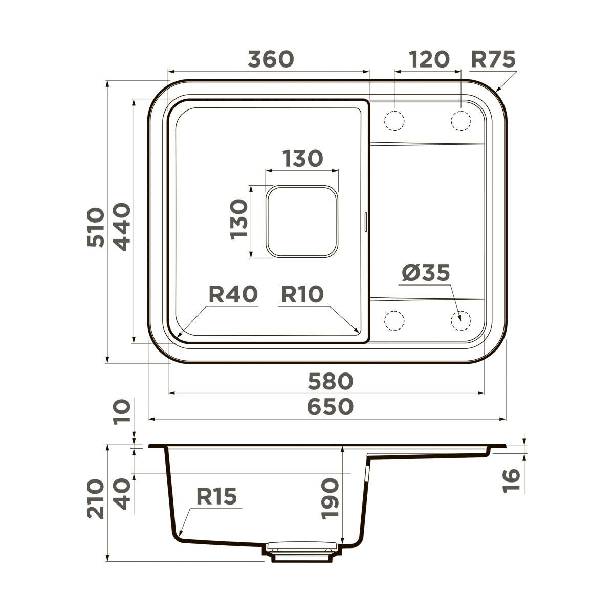 - Помимо гранита, в состав материала входит молотый кварц мельчайших размеров, которому характерны непревзойденная прочность и устойчивость к природным и химическим воздействиям. Свойства данного компонента вместе с долговечностью гранита обеспечивают мойке прочность и делают её устойчивой к любым механическим повреждениям: деформациям, сколам;