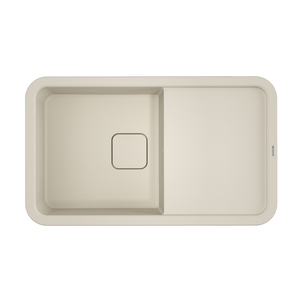 - Кухонная мойка изготовлена из матриала «Artgranit», технология производства которого заключается в том, что частицы кварца, гранита и прочного связующего полимера нового поколения, свойства которого похожи на акриловую смолу, соединяют вместе и помещают в форму. После застывания получается готовая мойка;