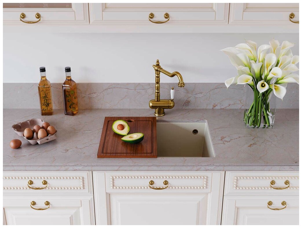 - Материал выдерживает высокие температуры до 280°С (но не стоит ставить на поверхность мойки горячие сковородки и кастрюли, т.к их температура может достигать 500°С).