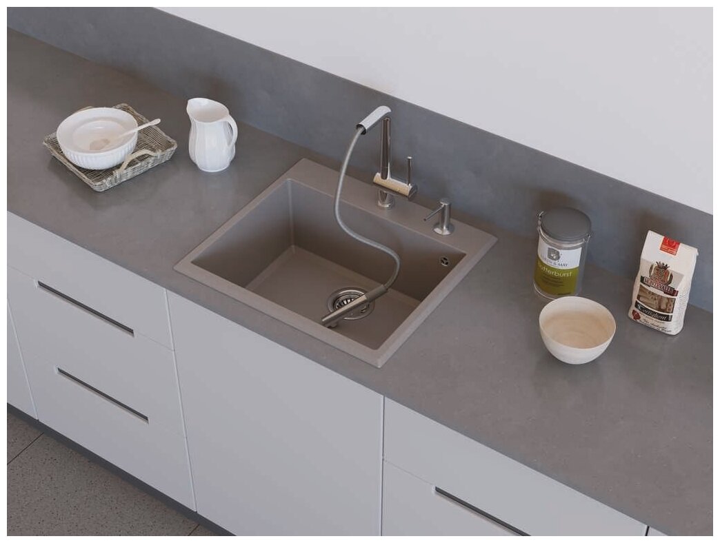 - Материал выдерживает высокие температуры до 280°С (но не стоит ставить на поверхность мойки горячие сковородки и кастрюли, т.к их температура может достигать 500°С).