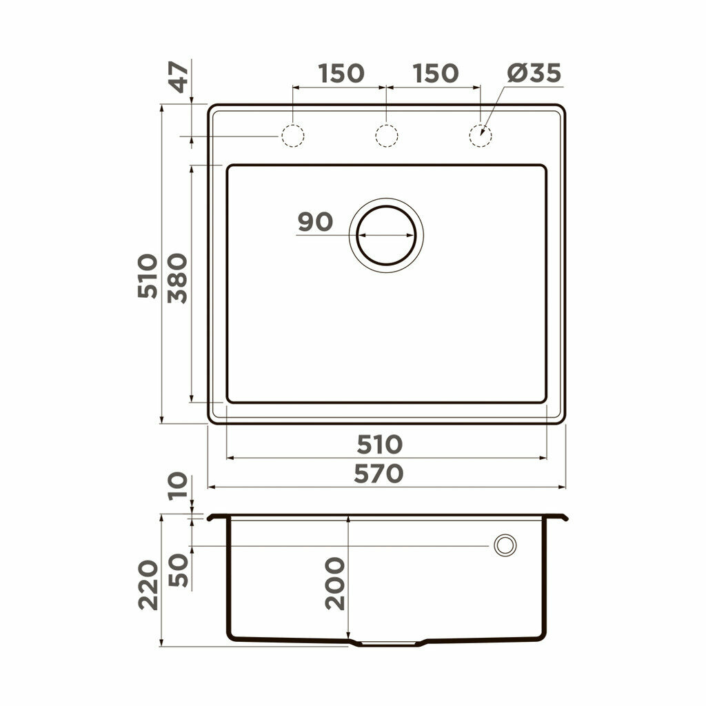 - Материал выдерживает высокие температуры до 280°С (но не стоит ставить на поверхность мойки горячие сковородки и кастрюли, т.к их температура может достигать 500°С).