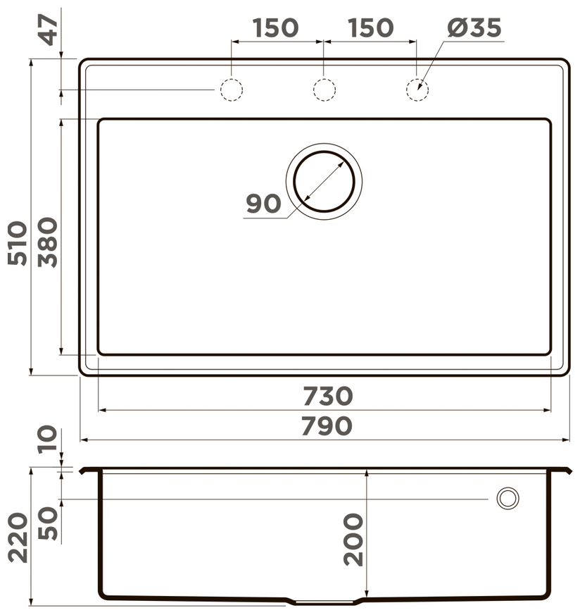 - Материал выдерживает высокие температуры до 280°С (но не стоит ставить на поверхность мойки горячие сковородки и кастрюли, т.к их температура может достигать 500°С).