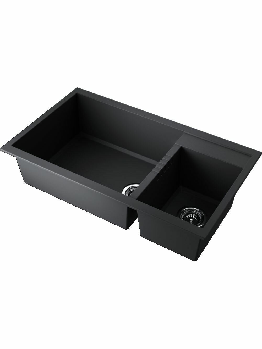 - Мойка черного цвета создана из материала «Tetogranit Metal». В его составе: акриловая смола и натуральный гранит с добавлением металлических частиц, которые придают блеск и мерцание поверхности мойки. «Tetogranit Metal» отличается максимальной устойчивостью к температурным перепадам и ударам;