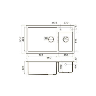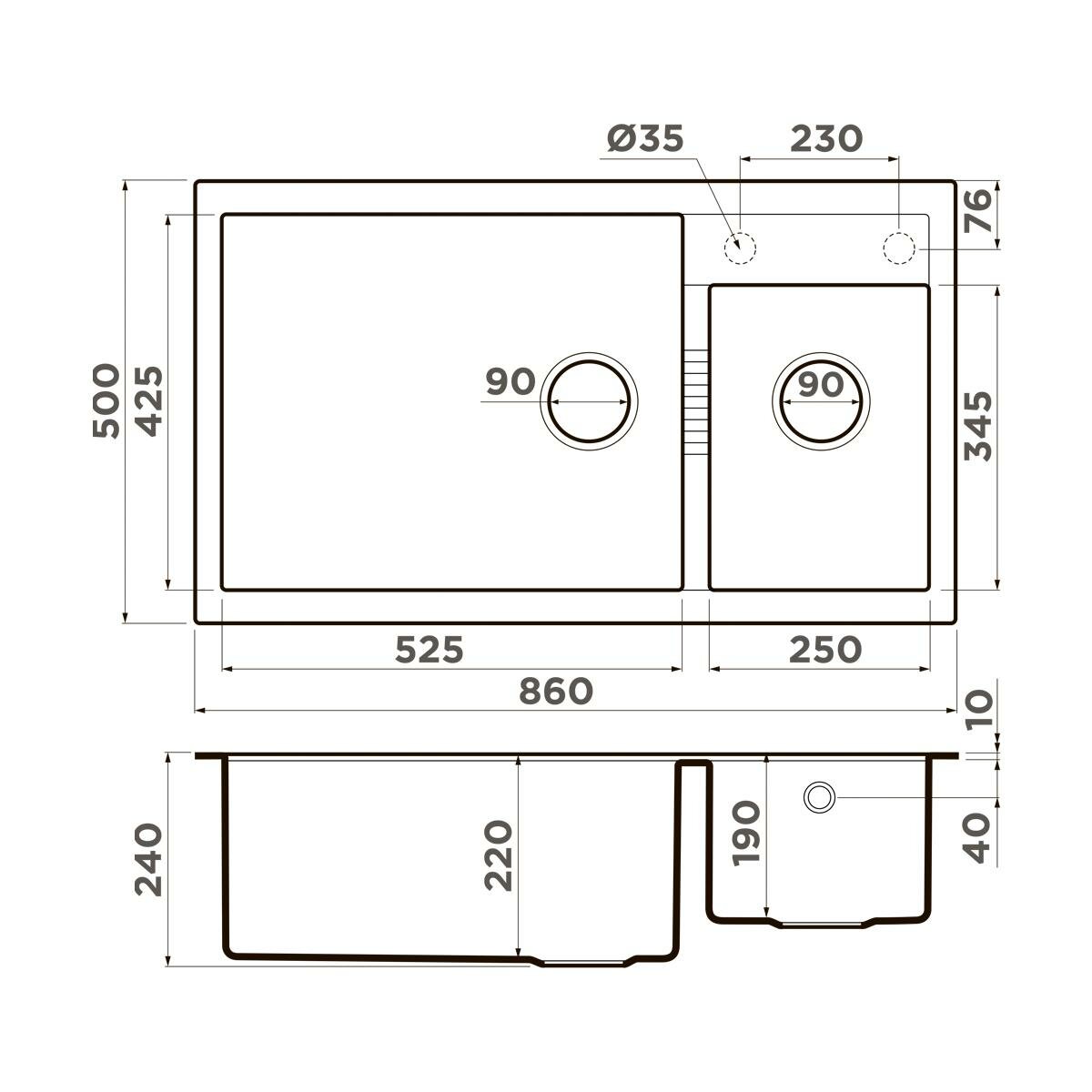 - Мойка черного цвета создана из материала «Tetogranit Metal». В его составе: акриловая смола и натуральный гранит с добавлением металлических частиц, которые придают блеск и мерцание поверхности мойки. «Tetogranit Metal» отличается максимальной устойчивостью к температурным перепадам и ударам;