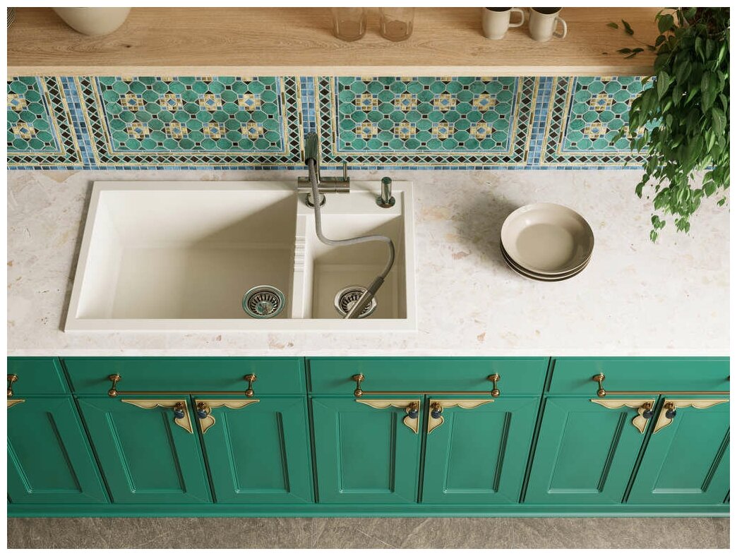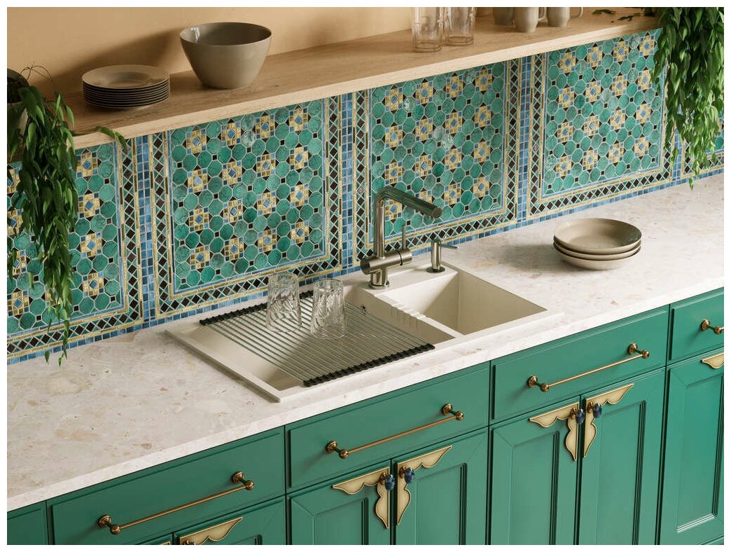 - Материал выдерживает высокие температуры до 280°С (но не стоит ставить на поверхность мойки горячие сковородки и кастрюли, т.к их температура может достигать 500°С).