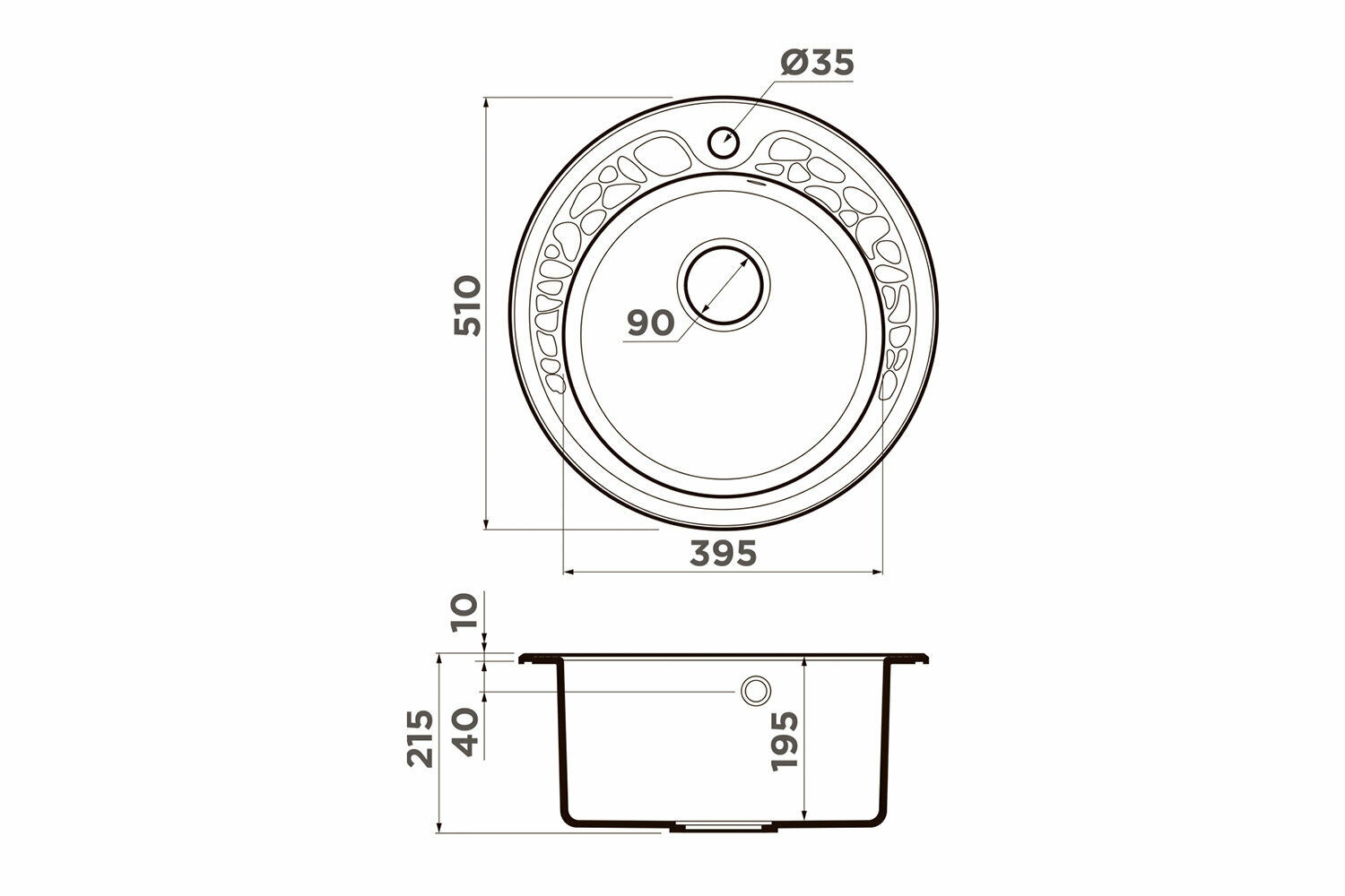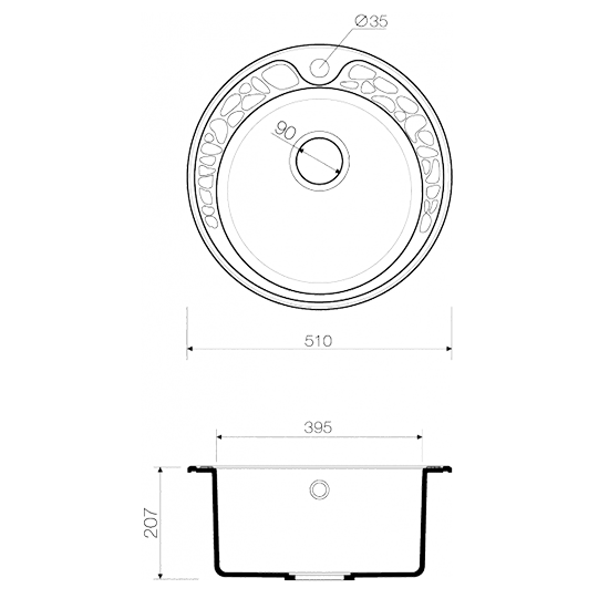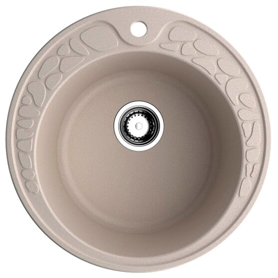 - Кухонная мойка изготовлена из матриала «Artgranit», технология производства которого заключается в том, что частицы кварца, гранита и прочного связующего полимера нового поколения, свойства которого похожи на акриловую смолу, соединяют вместе и помещают в форму. После застывания получается готовая мойка;
