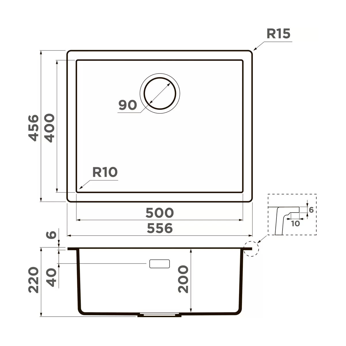 - Материал выдерживает высокие температуры до 280°С (но не стоит ставить на поверхность мойки горячие сковородки и кастрюли, т.к их температура может достигать 500°С);