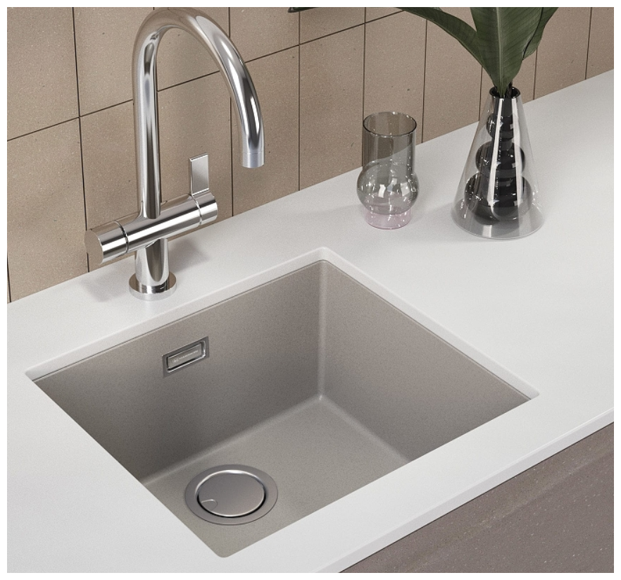 - Кухонная мойка изготовлена из передового материала «Artceramic», технология производства которого была разработана итальянскими специалистами и заключается в том, что измельченное сырье для производства керамики соединяют в пресс-форме с акриловыми смолами разного типа и нагревают с целью запуска химического процесса полимеризации (затвердевания). Важным моментом в процессе производства является использование сырья очень измельченного состояния, которое в связке с акриловой смолой образует однородную структуру с плотно прилегающими друг к другу молекулами. Структура, изготовленная при помощи такой технологии, исключает наличие даже малейших пор между частицами материала, благодаря чему достигается идеально гладкая поверхность и гигиеничность моек;