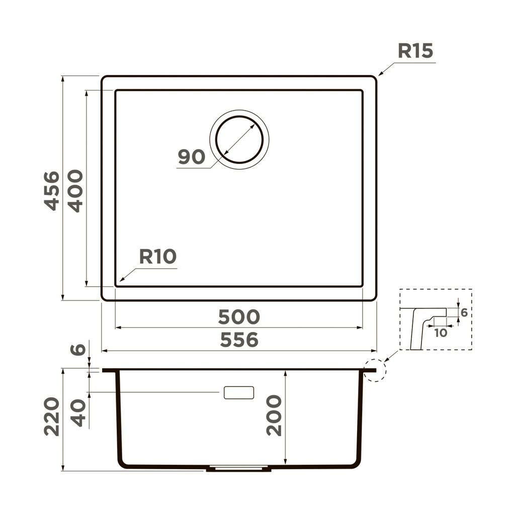 - Мойка черного цвета создана из материала «Tetogranit Metal». В его составе: акриловая смола и натуральный гранит с добавлением металлических частиц, которые придают блеск и мерцание поверхности мойки. «Tetogranit Metal» отличается максимальной устойчивостью к температурным перепадам и ударам;
