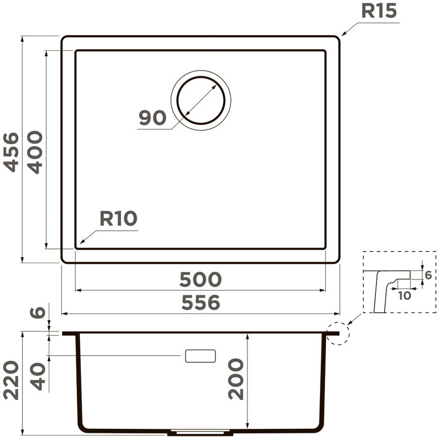 - Мойка черного цвета создана из материала «Tetogranit Metal». В его составе: акриловая смола и натуральный гранит с добавлением металлических частиц, которые придают блеск и мерцание поверхности мойки. «Tetogranit Metal» отличается максимальной устойчивостью к температурным перепадам и ударам;