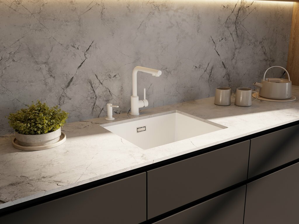 - Мойки из «Tetogranit» устойчивы к механическим повреждениям: деформациям, сколам;