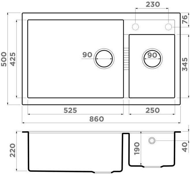 - Материал выдерживает высокие температуры до 280°С (но не стоит ставить на поверхность мойки горячие сковородки и кастрюли, т.к их температура может достигать 500°С).