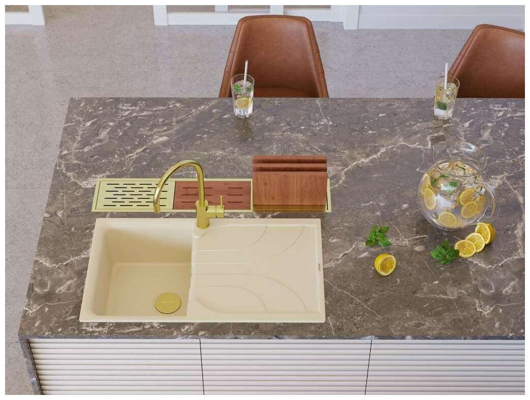 - Материал выдерживает высокие температуры до 280°С (но не стоит ставить на поверхность мойки горячие сковородки и кастрюли, т.к их температура может достигать 500°С).