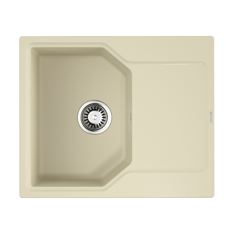 - Кухонная мойка изготовлена из матриала «Artgranit», технология производства которого заключается в том, что частицы кварца, гранита и прочного связующего полимера нового поколения, свойства которого похожи на акриловую смолу, соединяют вместе и помещают в форму. После застывания получается готовая мойка;