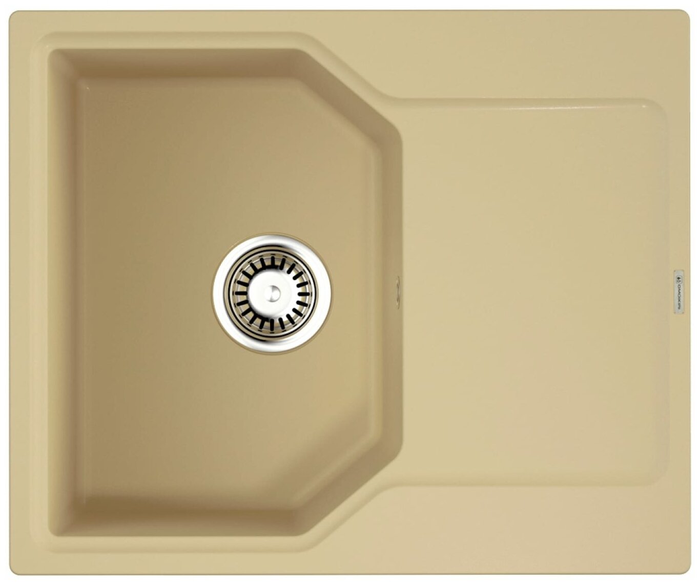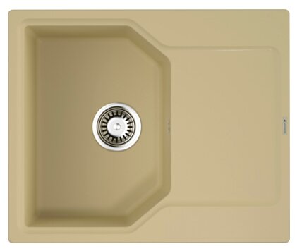 - Кухонная мойка изготовлена из матриала «Artgranit», технология производства которого заключается в том, что частицы кварца, гранита и прочного связующего полимера нового поколения, свойства которого похожи на акриловую смолу, соединяют вместе и помещают в форму. После застывания получается готовая мойка;