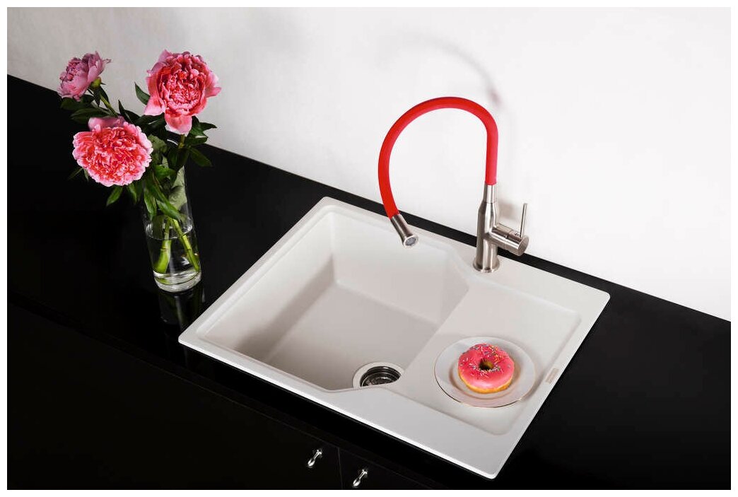 - Помимо гранита, в состав материала входит молотый кварц мельчайших размеров, которому характерны непревзойденная прочность и устойчивость к природным и химическим воздействиям. Свойства данного компонента вместе с долговечностью гранита обеспечивают мойке прочность и делают её устойчивой к любым механическим повреждениям: деформациям, сколам;