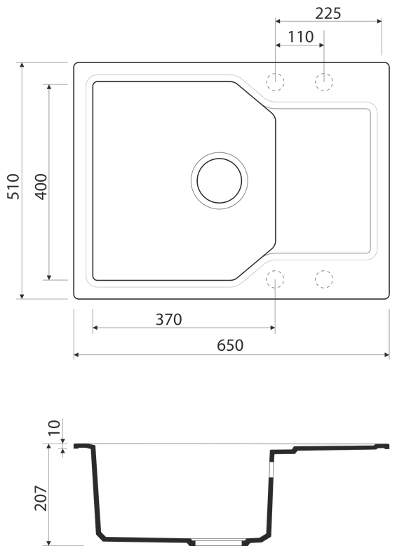 - Помимо гранита, в состав материала входит молотый кварц мельчайших размеров, которому характерны непревзойденная прочность и устойчивость к природным и химическим воздействиям. Свойства данного компонента вместе с долговечностью гранита обеспечивают мойке прочность и делают её устойчивой к любым механическим повреждениям: деформациям, сколам;