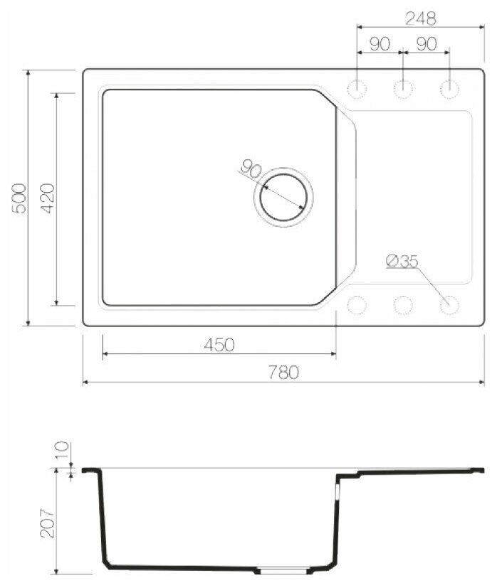 Длина мойки