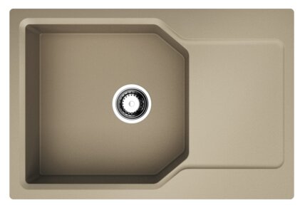 - Кухонная мойка изготовлена из матриала «Artgranit», технология производства которого заключается в том, что частицы кварца, гранита и прочного связующего полимера нового поколения, свойства которого похожи на акриловую смолу, соединяют вместе и помещают в форму. После застывания получается готовая мойка;