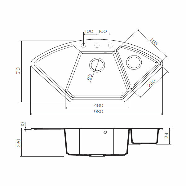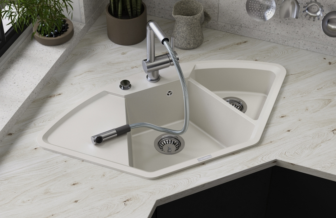 - Помимо гранита, в состав материала входит молотый кварц мельчайших размеров, которому характерны непревзойденная прочность и устойчивость к природным и химическим воздействиям. Свойства данного компонента вместе с долговечностью гранита обеспечивают мойке прочность и делают её устойчивой к любым механическим повреждениям: деформациям, сколам;
