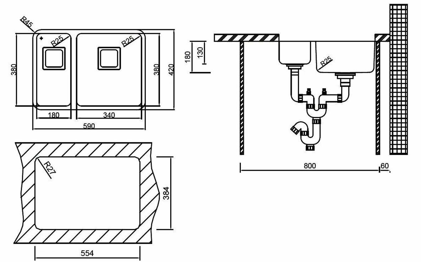 дополнительная чаша, Матовая, Нет, Перелив, С сифоном, корзинчатый вентиль, сливная арматура, стандартная