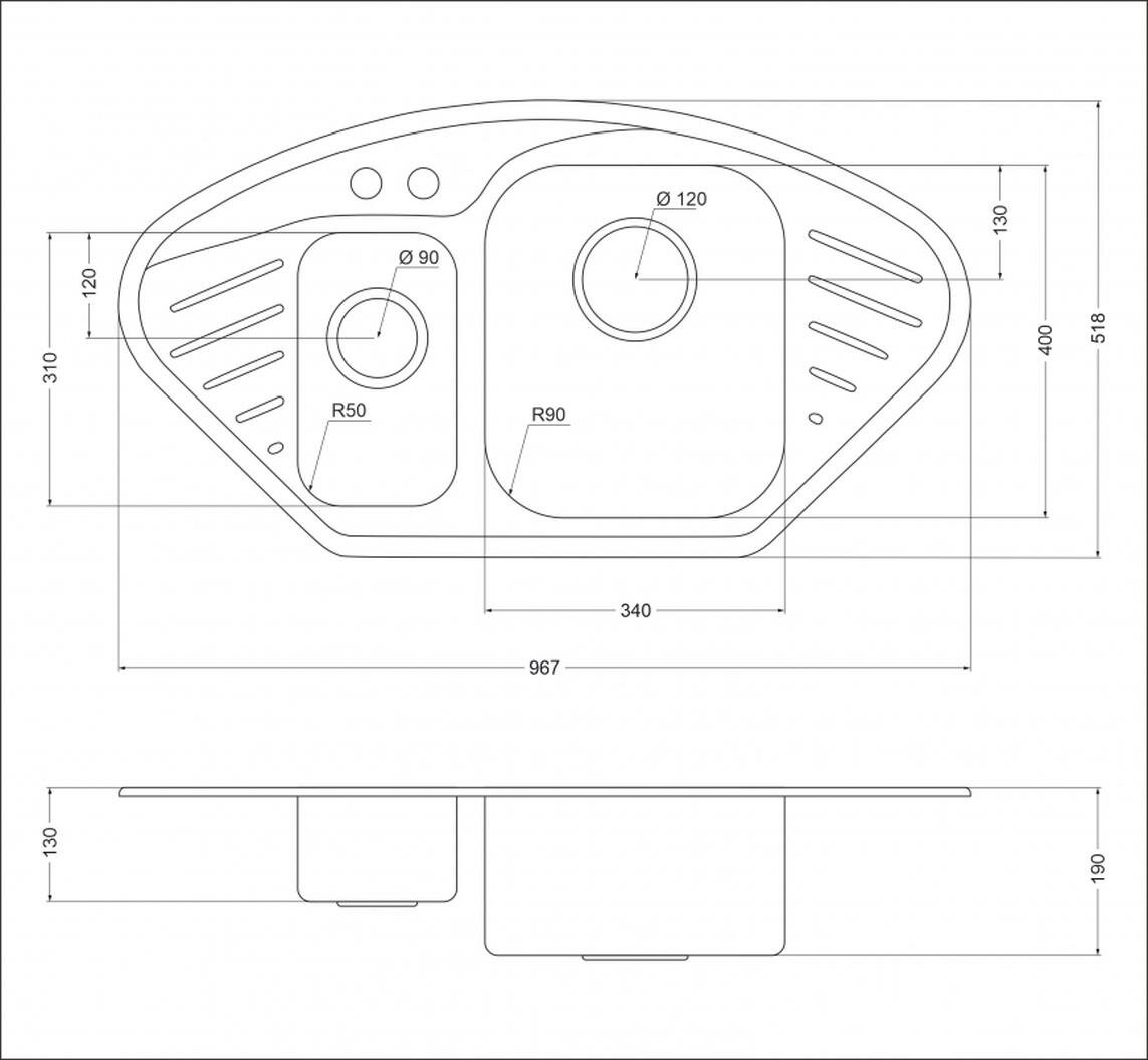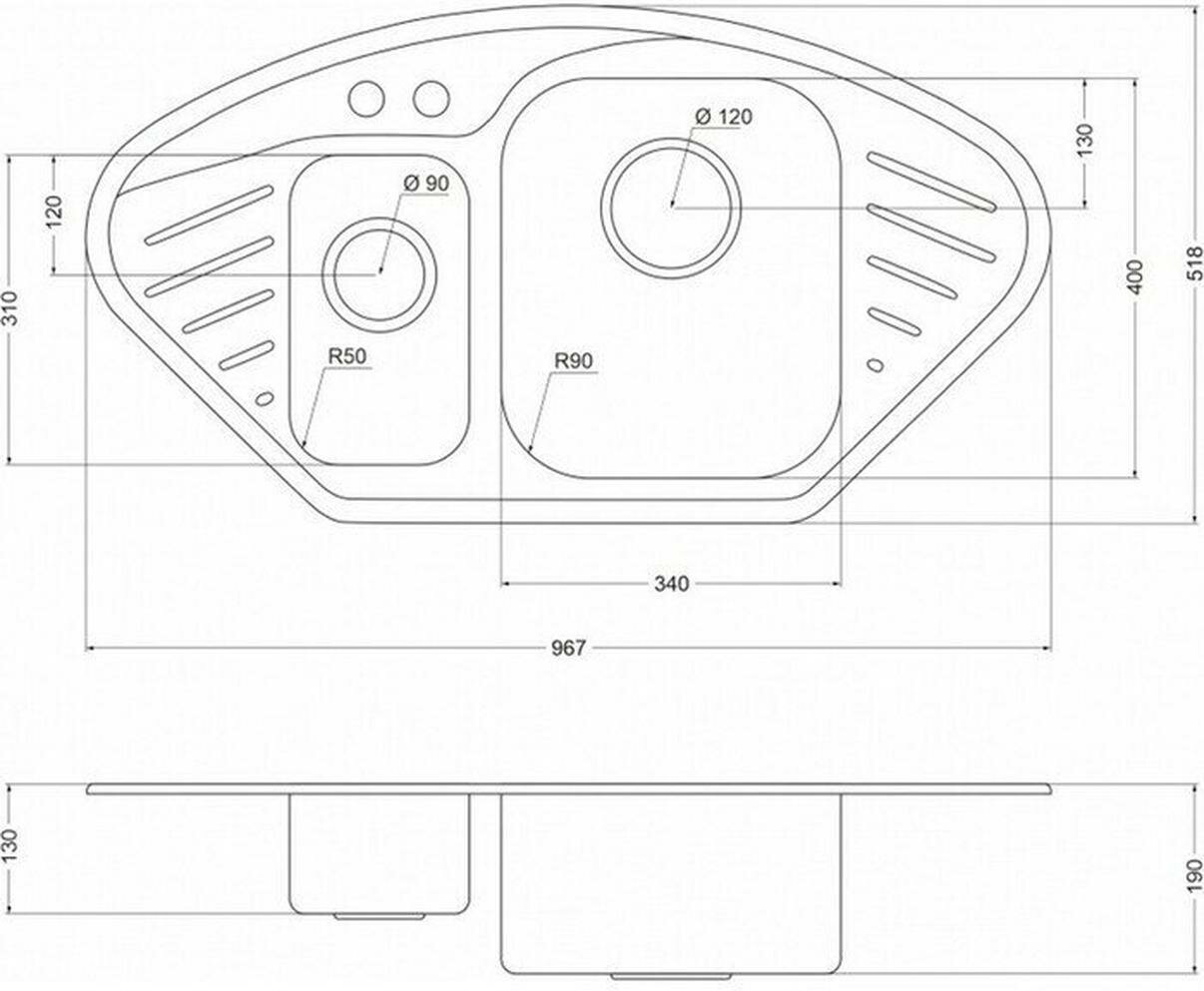 Комплектация - мойка - 1 шт., комплект креплений - 1 шт., корзинчатый вентиль - 1 шт., слив-перелив - 1 шт., инструкция - 1 шт. Оснащение - крепления/сливная арматура. Для сифона диаметр 9; монтажная длина - 49; монтажная ширина - 84
