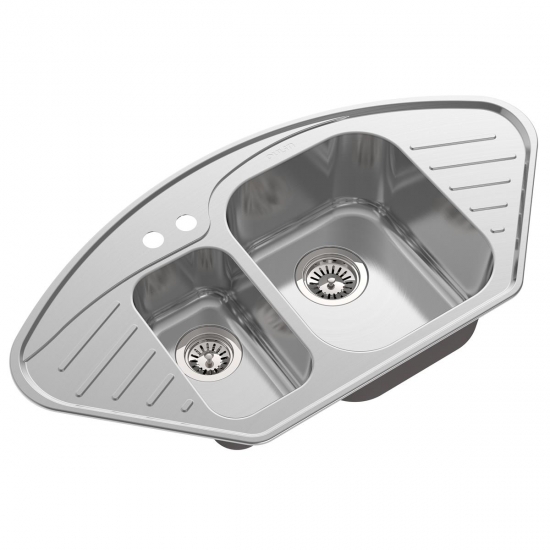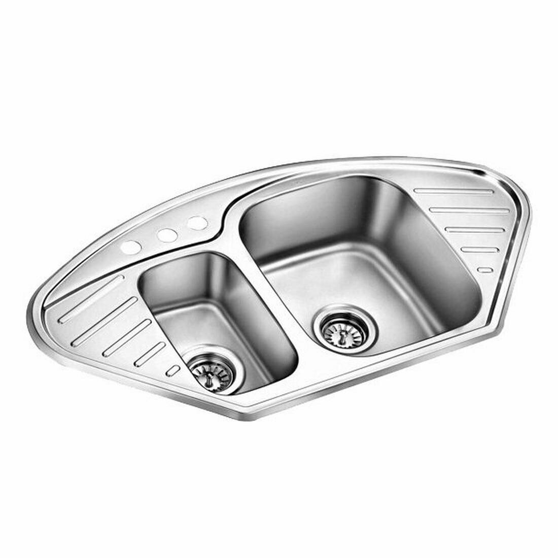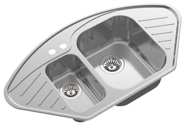дополнительная чаша, угловая, Матовая, С сифоном, клапан-автомат, корзинчатый вентиль, отверстие под смеситель, сливная арматура