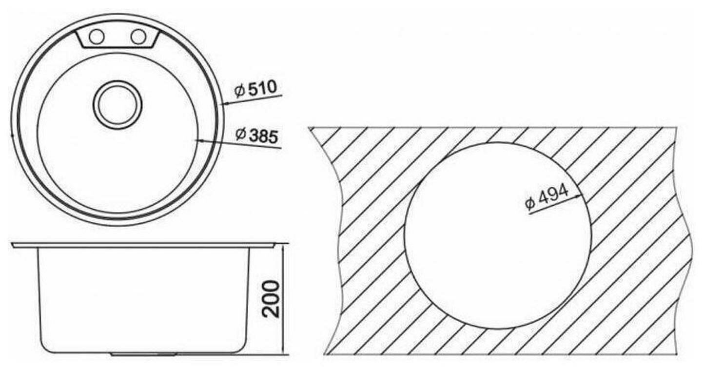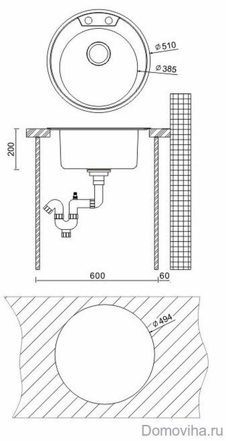 клапан-автомат, корзинчатый вентиль, крепеж, отверстие под смеситель, сливная арматура, Кухонная мойка Oulin OL-R510 1 шт, Сливная арматура с корзинчатым вентилем / выпуск / перелив / сифон /комплект крепежа, мойка, панель, рама, сливной бачок